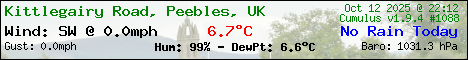 6.8°C | 0.0 mm | 0.0 mm | 0.0 mm | 0.0 mph | 0.0 mph | 1031.3 hPa | 99% | ![]() ![]() |